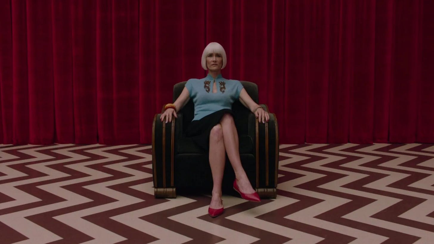 The Return has been called a lot of things, and interpretations of its narrative are many. Just look at Reddit, and you'll see an almost endless amount of points of view, speculation on what certain elements could mean, and, of course, what message Lynch is trying to convey. Funny thing is, none of them are wrong. Lynch is such a fan of letting the audience mull things over in their own minds. He loves setting up a scene, manipulating the tone, the idea, and the narrative, then leaving key elements to be filled in by introspection and your emotional response. Beyond this, The Return functions as a brilliant, meta-commentary on television itself, and its relentless drive to entertain us with nostalgia. Having always respected Mark Frost and David Lynch's obvious knack for soap opera parody, a style they've honed over years, it’s particularly interesting when critics online frame The Return as 'taking the piss out of' this very cycle. Hollywood itself is deeply invested in constantly mining what's old to quench the public's entertainment thirst, trapping us in an endless cycle of memory.